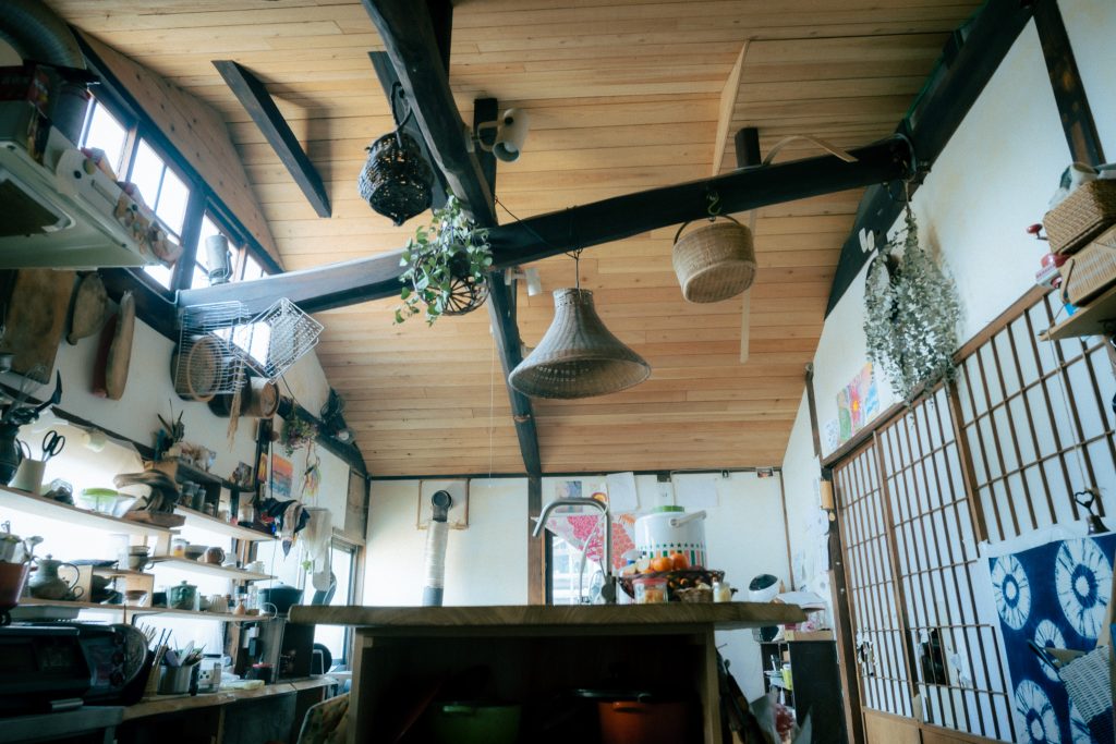 永きに渡り生活する人に合わせて繰り返されてきた改造、時に天井を作りオーナーの子供時代では見ることの出来なかった梁や換気窓を時をへてまたあらわすことにした